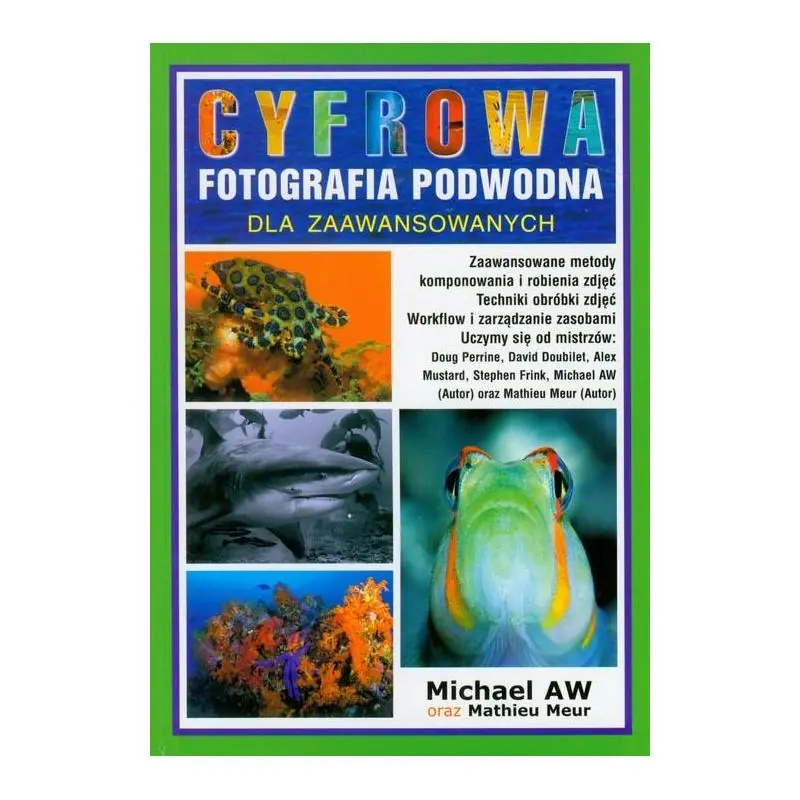 ",Cyfrowa fotografia podwodna dla zaawansowanych", to propozycja dla tych, którzy poważnie myślą o fotografii i chcą w pełni docenić i wykorzystać sztukę fotografii podwodnej. Książka została podzielona na moduły ułożone tak, by zapewnić kompleksowy opis zagadnień takich jak sposoby tworzenia kompozycji, techniki fotografowania w naturalnym świetle, wykonywanie zdjęć makro i super makro, a także fotografii szerokokątnych zarówno z modelami, jak i bez nich, aż po fotografowanie z użyciem filtrów i lamp typu HID.