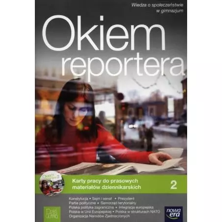 Karty pracy do prasowych materiałów dziennikarskich „Okiem reportera 2” to, podobnie jak pierwsza część tej publikacji, doskonały sposób na wzbogacenie lekcji wiedzy o społeczeństwie w gimnazjum. Zadania zaprojektowano w taki sposób, aby wspomagały rozwijanie świadomości obywatelskiej ucznia i umożliwiały mu budowanie własnych poglądów, a nauczycielowi ułatwiły przekazywanie wiedzy z wykorzystaniem nowoczesnych technologii. Zebrane artykuły pochodzą z najpopularniejszych polskich dzienników i tygodników społeczno-politycznych: „Gazety Wyborczej”, „Polityki” i „Wprost”. Ukazują one z różnych perspektyw światopoglądowych złożoność problemów dzisiejszego świata oraz wieloaspektowość współczesnej polityki. Zagadnienia, których dotyczą teksty, są zgodne z założeniami nowej podstawy programowej.