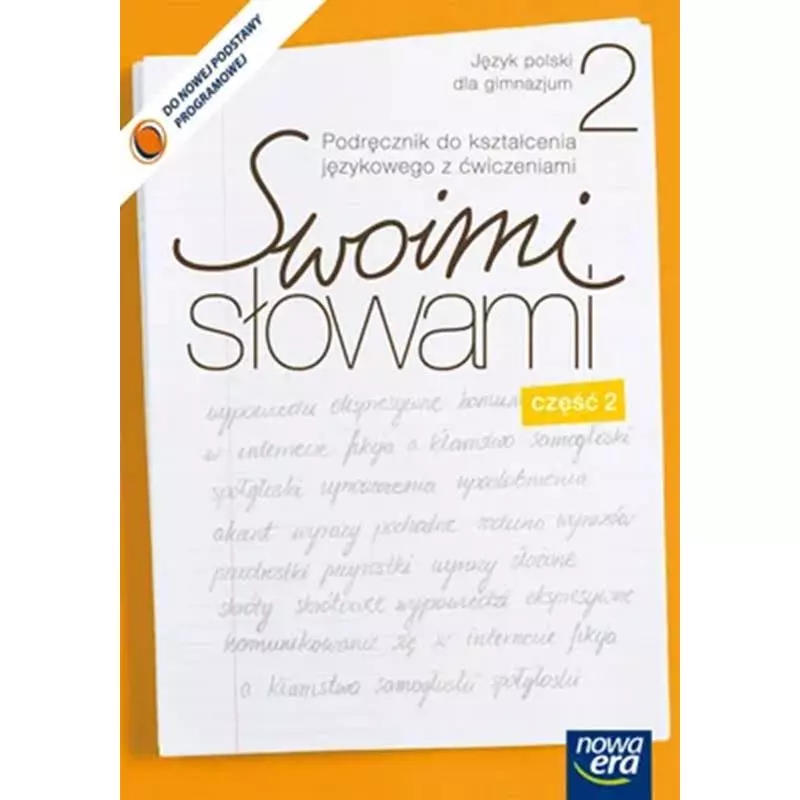 Część druga podręcznika do kształcenia językowego dla klasy drugiej składa się czterech działów dotyczących: komunikacji językowej, fonetyki, słowotwórstwa oraz czytania ze zrozumieniem. W pierwszym z nich uczeń może poznać między innymi reguły związane z komunikowaniem się w internecie. Przedstawione w podręczniku zagadnienia z fonetyki i słowotwórstwa zostały powiązane z kształceniem poprawności ortograficznej.Podręczniki z serii `Swoimi słowami` umożliwiają efektywne kształcenie praktycznych umiejętności językowych. Każdy z rozdziałów zawiera niezbędną wiedzę teoretyczną, a także liczne ćwiczenia o różnym stopniu trudności, co pozwala na indywidualizację nauczania. Urozmaicone zadania odwołują się do codziennych doświadczeń gimnazjalistów. Ćwiczenia są ukierunkowane na praktyczne wykorzystanie wiedzy oraz służą kształceniu poprawności językowej i doskonaleniu umiejętności tworzenia wypowiedzi pisemnych i ustnych. Uczeń nie tylko poznaje zasady rządzące językiem, lecz również uczy się wykorzystywać je w codziennej komunikacji.