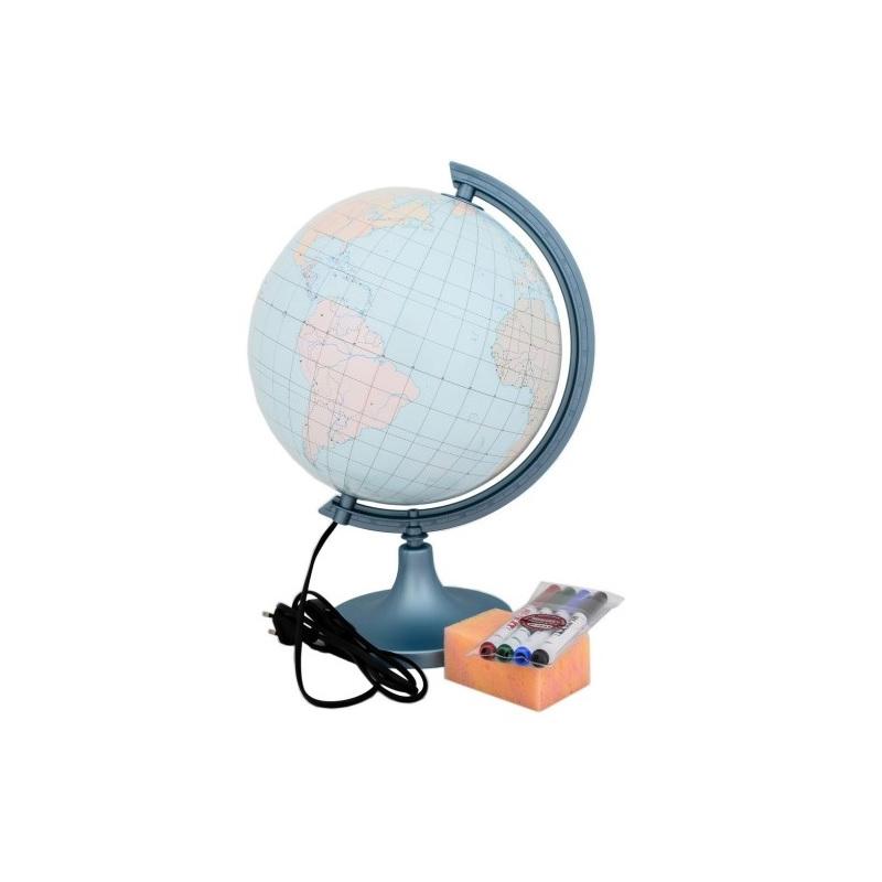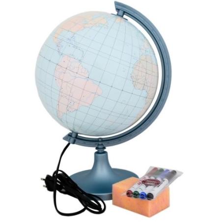 Czy na globusie można pisać? Tak, można pisać po jego powierzchni ścieralnymi flamastrami dołączonymi do zestawu.