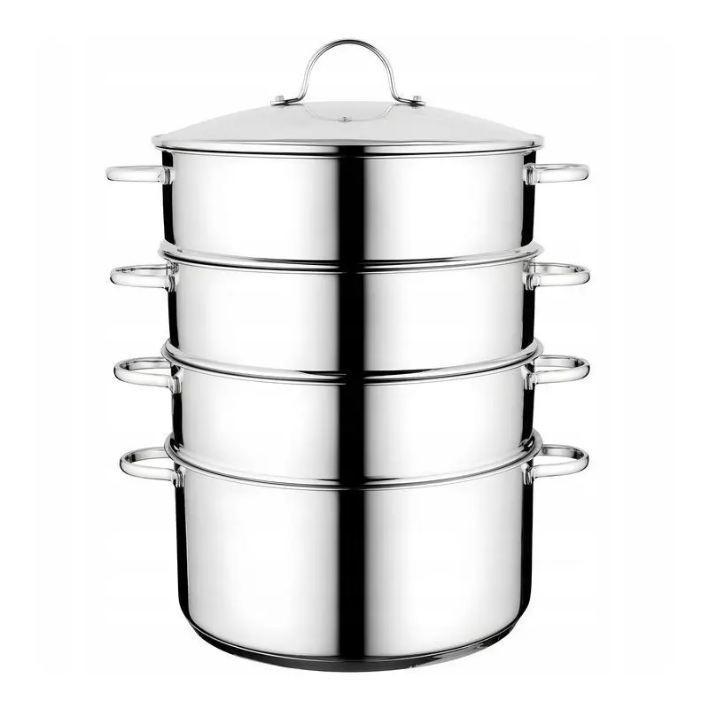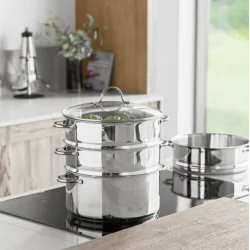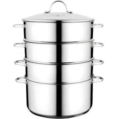 zdrowe i efektywne przygotowywanie posiłków. Wykonany z trwałej stali nierdzewnej 18/10, zapewnia długowieczność oraz odporność na korozję. Dzięki trzem poziomom gotowania, pozwala na jednoczesne przygotowanie kilku potraw, co jest idealne dla większych rodzin lub podczas spotkań towarzyskich. Konstrukcja zestawu umożliwia również użycie