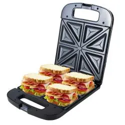 Adler AD 3055 to doskonały wybór dla osób, które cenią sobie szybkie przygotowanie smacznych i chrupiących kanapek. Wysoka moc, powłoka nieprzywierająca i możliwość przechowywania w pionie czynią z niego praktyczne urządzenie do każdej kuchni.