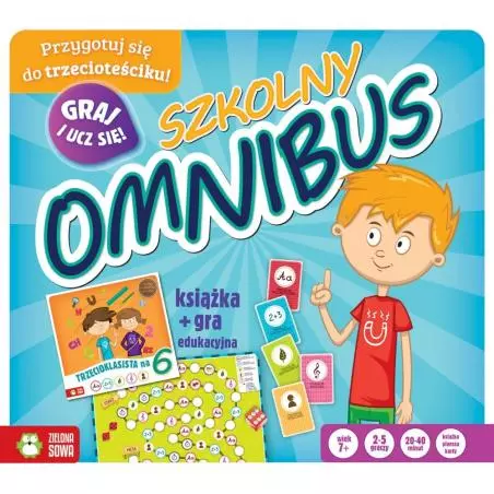 Szkolny Omnibus gry edukacyjne łączące zabawę z nauką i systematyzacją wiedzy zdobytej w ciągu pierwszych trzech lat nauki w szkole podstawowej. Zestaw jest idealnym uzupełnieniem szkolnego nauczania i jednocześnie sprawdzianem przygotowującym do przeprowadzanego w szkołach trzecioteściku.