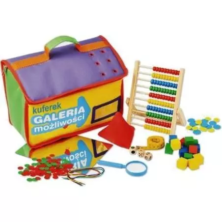 W kuferku pomocy dydaktycznych „Galerii możliwości” dla klas 1-3 znajdą Państwo zabawki edukacyjne przeznaczone dla dzieci:
