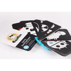 Karty Kontrastowe na Kółeczku Czuczu 3M+ to zestaw edukacyjnych kart przeznaczonych dla niemowląt od 3 miesiąca życia. Dzięki wyraźnym, czarno-białym i kontrastowym wzorom, karty wspierają rozwój wzroku, koncentracji i percepcji wzrokowej najmłodszych