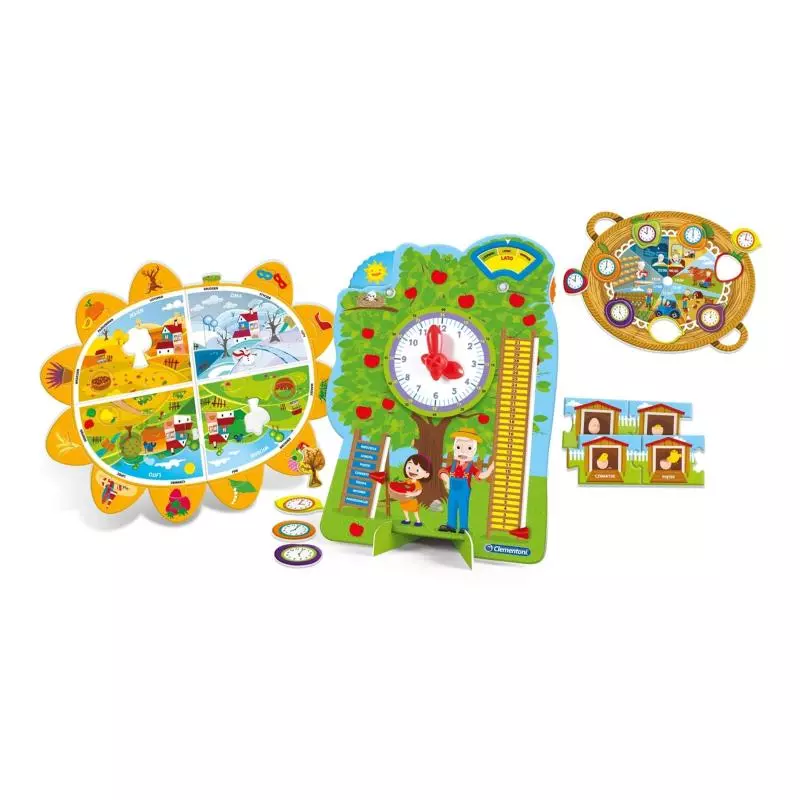 - uczy dzieci jak odczytywać godzinę, jakie są dni tygodnia, miesiące i pory roku