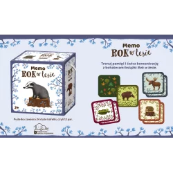 "Rok w lesie: Memo" to prosta, edukacyjna gra pamięciowa inspirowana bestsellerową książką „Rok w lesie”. Została stworzona z myślą o najmłodszych dzieciach już od 2. roku życia. Przepięknie ilustrowane żetony z postaciami zwierząt leśnych zachęcają do zabawy, ćwiczenia pamięci i poznawania świata przyrody w naturalny sposób. Gra rozwija spostrzegawczość, koncentrację i uczy pierwszych zasad rywalizacji.