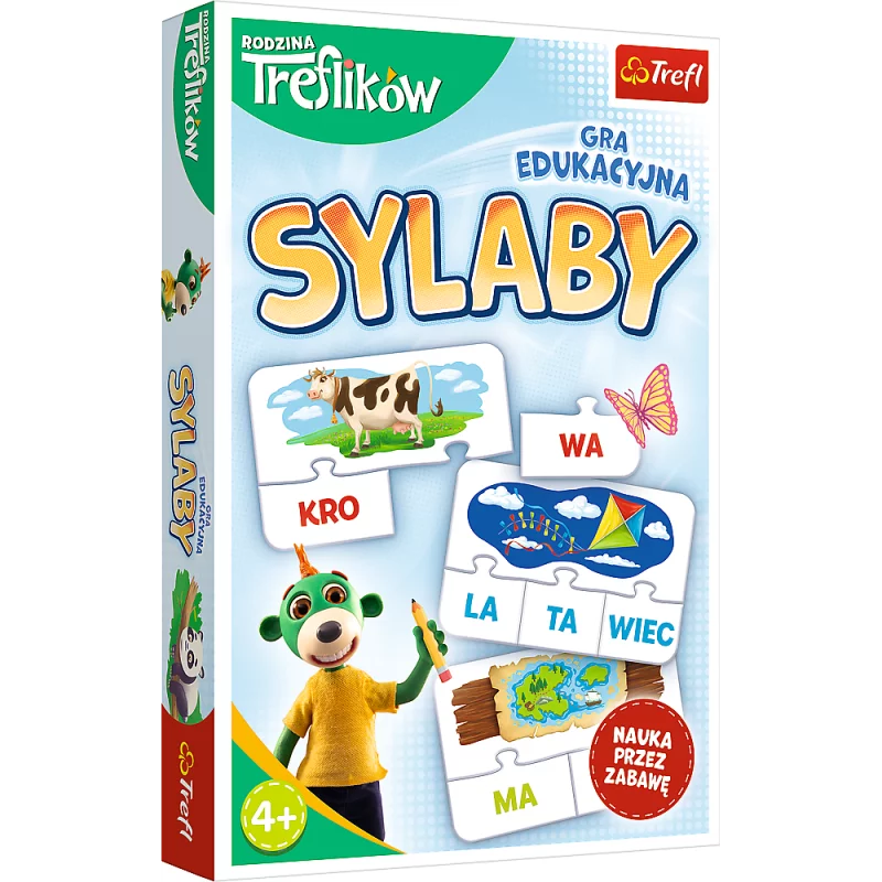 Zabawa z Treflikami ćwiczy zdolność sylabizowania, rozwija pamięć wzrokową oraz zwiększa zasób słownictwa.