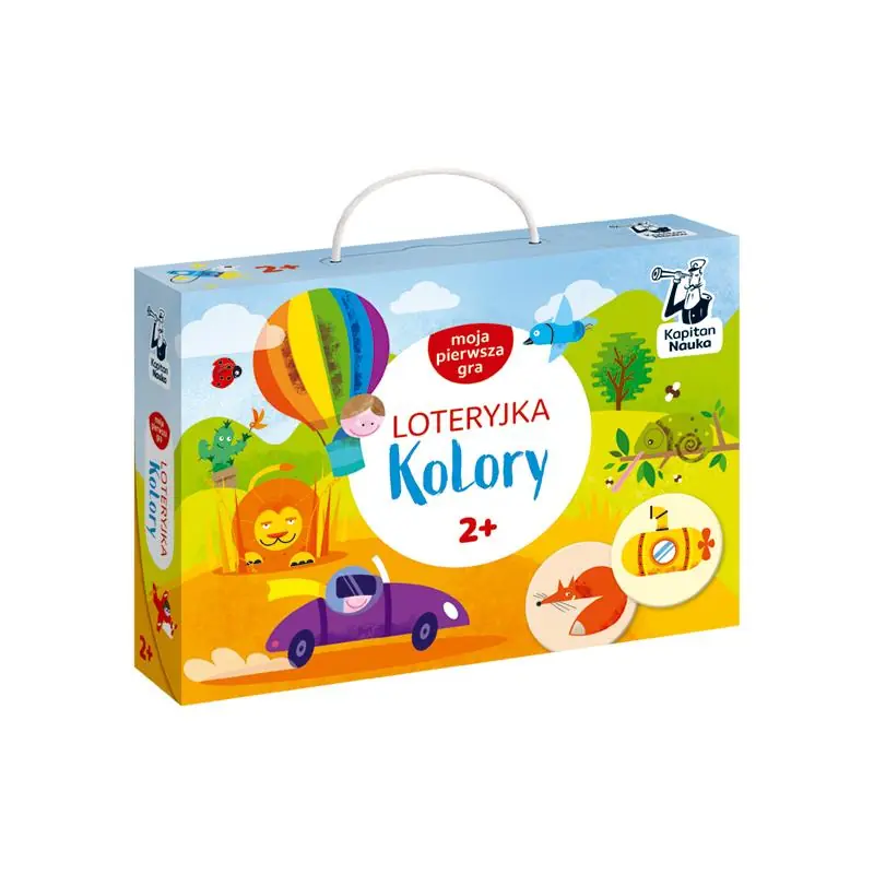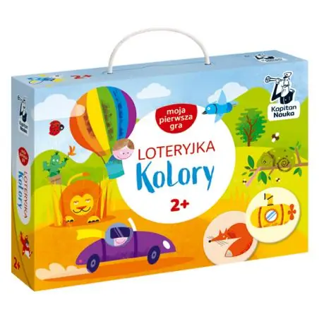 Moja pierwsza gra. Loteryjka Kolory (2+) to emocjonująca gra dla maluchów z niezwykle prostymi zasadami. Co jest zielone jak trawa, a co czerwone jak muchomor? Mali gracze losują żetony i zapełniają plansze kolorami. Wygrywa ten, kto pierwszy ułoży wszystkie obiekty na planszy.