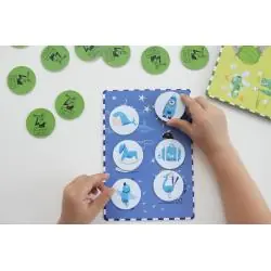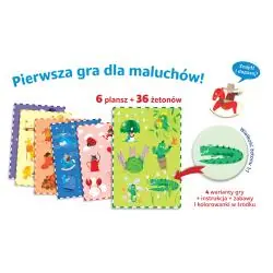 W zestawie znajduje się 6 plansz i 36 żetonów. Trwałe, wykonane z grubej tektury elementy są idealne już dla dwulatków.