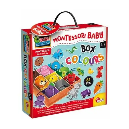 Klasyczne pudełko z przegródkami i wieloma kolorami! Klasyfikacyjna gra oparta na metodzie Montessori do odkrywania kolorów i nauki o nich.