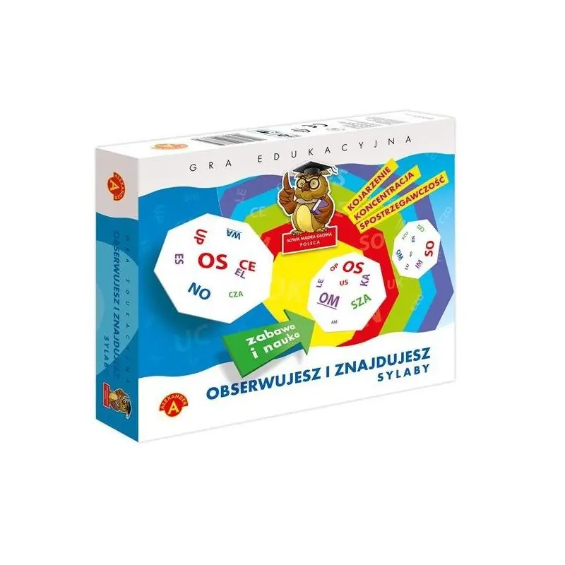 „Sylaby – Obserwujesz, Znajdujesz” z serii Sowa Mądra Głowa to wciągająca gra edukacyjna dla dzieci od 7. roku życia, która łączy zabawę z nauką czytania. Została opracowana z myślą o wspieraniu rozwoju językowego i percepcyjnego najmłodszych. Dzięki atrakcyjnej formie i przemyślanej