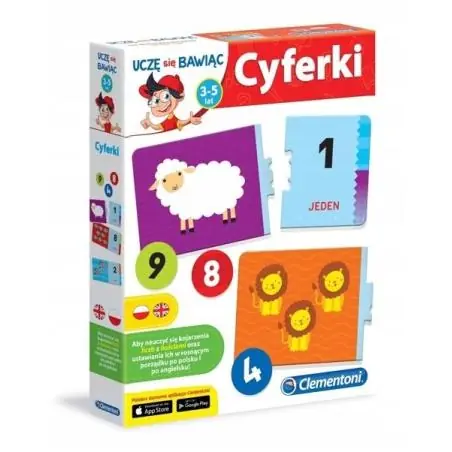 „Cyferki Uczę się Bawiąc” od Clementoni to edukacyjna gra dla dzieci w wieku 3–5 lat, która wprowadza najmłodszych w świat liczb i prostych działań matematycznych. Dzięki kolorowym ilustracjom i interaktywnym zadaniom, dziecko uczy się rozpoznawania cyfr, liczenia i