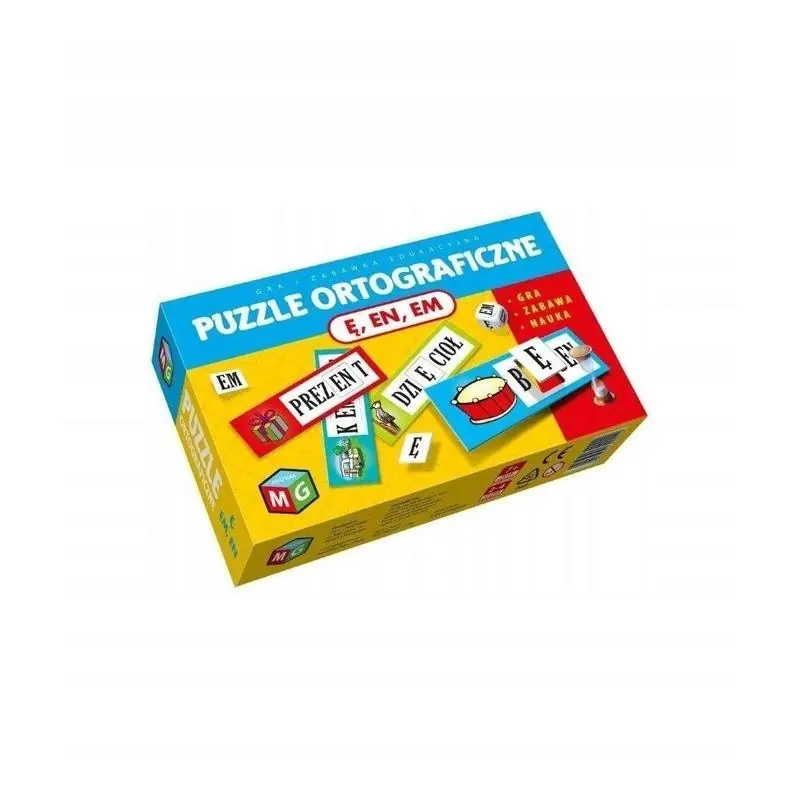 Puzzle ortograficzne Ę EN EM Multigra to edukacyjna gra słowna, która w atrakcyjny sposób pomaga dzieciom przyswoić trudne reguły polskiej ortografii. Zestaw składa się z 24 dużych, trwałych elementów, które należy połączyć w odpowiednie pary słów zawierających głoski „Ę”, „EN”, „EM”. To idealna pomoc dydaktyczna dla dzieci w wieku szkolnym, wspierająca naukę przez zabawę – w domu, w szkole i na zajęciach terapeutycznych.