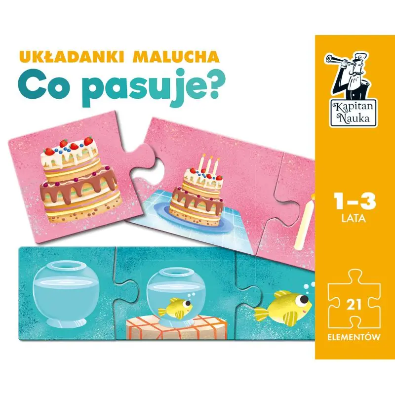 Puzzle Kapitan Nauka. Układanki malucha. Co pasuje? Edgard to zestaw edukacyjnych puzzli dla najmłodszych, który wspiera rozwój logicznego myślenia, spostrzegawczości i koordynacji ręka-oko. Dzięki kolorowym ilustracjom i prostym zadaniom dzieci uczą się