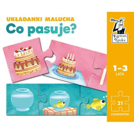 Puzzle Kapitan Nauka. Układanki malucha. Co pasuje? Edgard to zestaw edukacyjnych puzzli dla najmłodszych, który wspiera rozwój logicznego myślenia, spostrzegawczości i koordynacji ręka-oko. Dzięki kolorowym ilustracjom i prostym zadaniom dzieci uczą się dopasowywania kształtów, nazw przedmiotów i zjawisk.