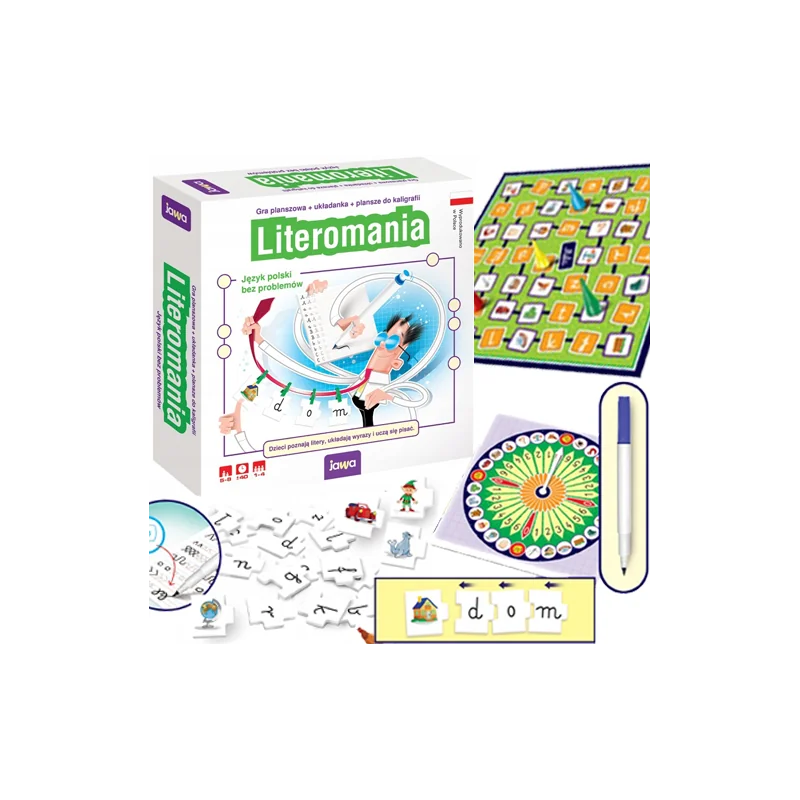 Gra planszowa edukacyjna rodzinna Układanka Literomania Nauka Pisania Jawa to praktyczne narzędzie wspomagające naukę liter, tworzenia wyrazów i pierwszych prób pisania. Łączy zabawę z edukacją, wspierając rozwój językowy dzieci w wieku przedszkolnym i