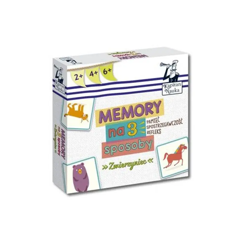 To nie jest zwykłe memory! To trzy warianty gry o rosnącym stopniu trudności, które wciągną do zabawy dzieci w każdym wieku i o różnym temperamencie. To fascynująca zabawa, która przy okazji ćwiczy pamięć, koordynację wzrokowo-ruchową, koncentrację, spostrzegawczość i