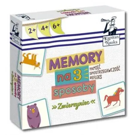 To nie jest zwykłe memory! To trzy warianty gry o rosnącym stopniu trudności, które wciągną do zabawy dzieci w każdym wieku i o różnym temperamencie. To fascynująca zabawa, która przy okazji ćwiczy pamięć, koordynację wzrokowo-ruchową, koncentrację, spostrzegawczość i refleks. Młodsze dzieci poznają nazwy zwierząt, z którymi do tej pory nie miały styczności, a starsze dzieci będą mogły porównać zabawne ilustracje z własnymi obserwacjami.