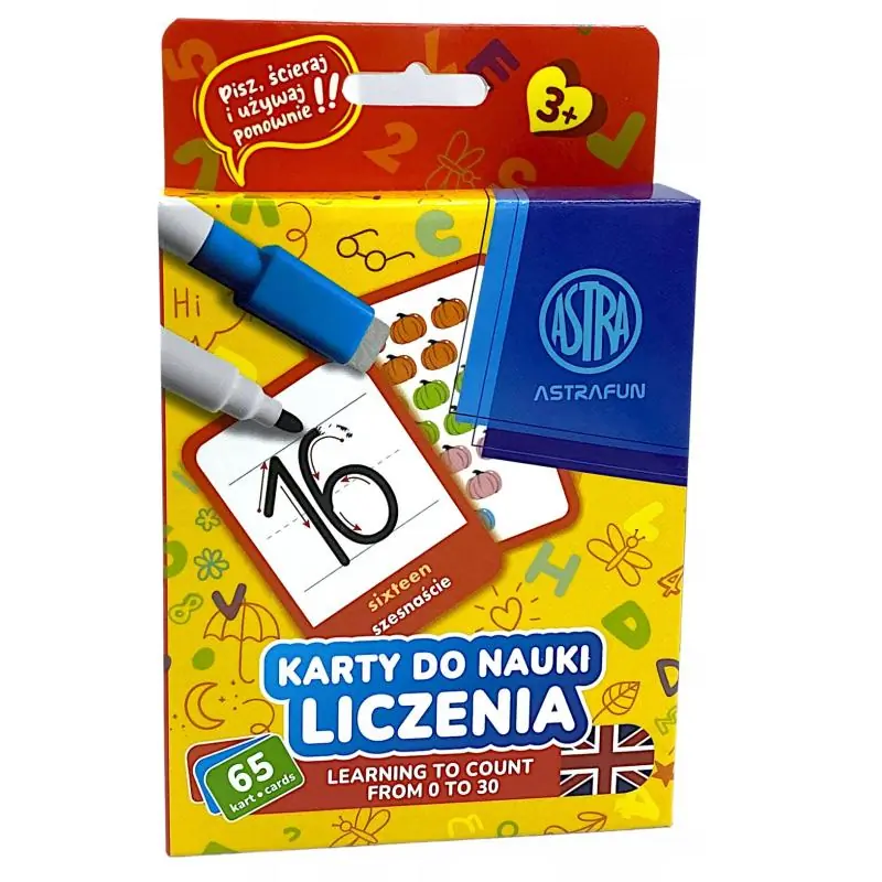 Zestaw kart edukacyjnych Astra to doskonałe narzędzie do nauki liczenia i rozwijania umiejętności matematycznych u dzieci. Kolorowe, czytelne ilustracje i trwałe wykonanie sprawiają, że nauka staje się ciekawą zabawą.