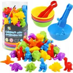 Dinozaury do nauki kolorów i liczenia Norimpex to kreatywny zestaw edukacyjny, który łączy naukę z zabawą. Dzięki metodzie Montessori dzieci mogą w naturalny sposób rozwijać umiejętności matematyczne, zdolności manualne oraz koncentrację. To doskonała propozycja dla dzieci rozpoczynających przygodę z liczeniem i sortowaniem.