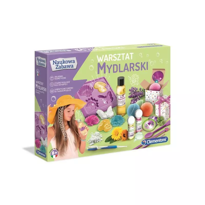 Warsztat Mydlarski to kreatywny zestaw, który pozwala dzieciom (od 8. roku życia) stworzyć własne mydła. Dzięki temu zestawowi, maluchy mogą poznać tajniki ręcznie robionych kosmetyków, rozwijać zdolności manualne i wyobraźnię, a przy tym świetnie się