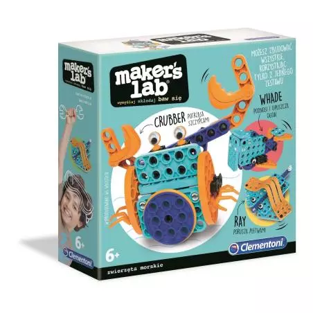 Fantastyczny zestaw konstrukcyjny dla małych dzieci, za pomocą którego można jednocześnie stworzyć 3 modele morskich zwierząt: kraba, wieloryba i płaszczkę.