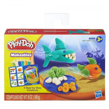 Zestaw tematyczny zawierający akcesoria do stworzenia wodnego świata. W zestawie paski ciastoliny do kreacji ryb i innych zwierząt oceanu. Dodatkowo w środku znajdują się karty podpowiadające jak stworzyć daną rybkę.