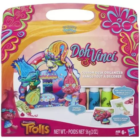 Troll zamieszkał w twoim przyborniku? Wszystko możliwe! Śliczny przybornik na drobiazgi i akcesoria ozdabiasz masą plastyczną Doh-Vinci, tworząc unikalne dzieła, które są zarówno funkcjonalne, jak i dekoracyjne. To od ciebie zależy, jak zwariowana będzie fryzurka Poppy, Harper i Brancha. Zabawne stworki stanowią element trollowego przybornika, który uprzyjemni Ci zabawę z pudełkiem pełnym skarbów.