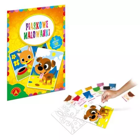 Malowanka piaskowa piesek i kotek to kreatywna propozycja dla najmłodszych dzieci, która łączy zabawę z nauką i rozwojem zdolności manualnych. Kolorowe ilustracje sympatycznych zwierzątek zachęcają do twórczej aktywności, a forma malowania piaskiem jest intuicyjna i bezpieczna dla