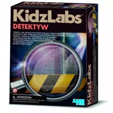 Odkryj jak detektywi identyfikują podejrzanych i zbierają istotne ślady w miejscu popełnienia przestępstwa. To super zabawa! Baw się i ucz jednocześnie! Zawartość: - karty do zbierania i archiwizowania odcisków - poręczna, plastikowa walizeczka na wszystkie akcesoria - legitymacja policyjnego detektywa - przezroczyste naklejki do zdejmowania odcisków palców - karty indentyfikacyjne do tworzenia bazy danych z odciskami palców i ich archiwizowania - poduszka z tuszem do zdejmowania odcisków palców od Twoich przyjaciół i bliskich - szkło powiększające do badania odcisków palców - pędzel - proszek daktyloskopijny - podkładka do zdejmowania odcisków palców - instrukcja.