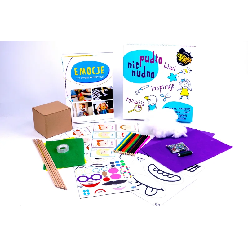 Kreatywny zestaw zabaw i zadań wraz ze wszystkimi materiałami potrzebnymi do zabawy. Zestaw przybliża dziecku świat uczuć i emocji.