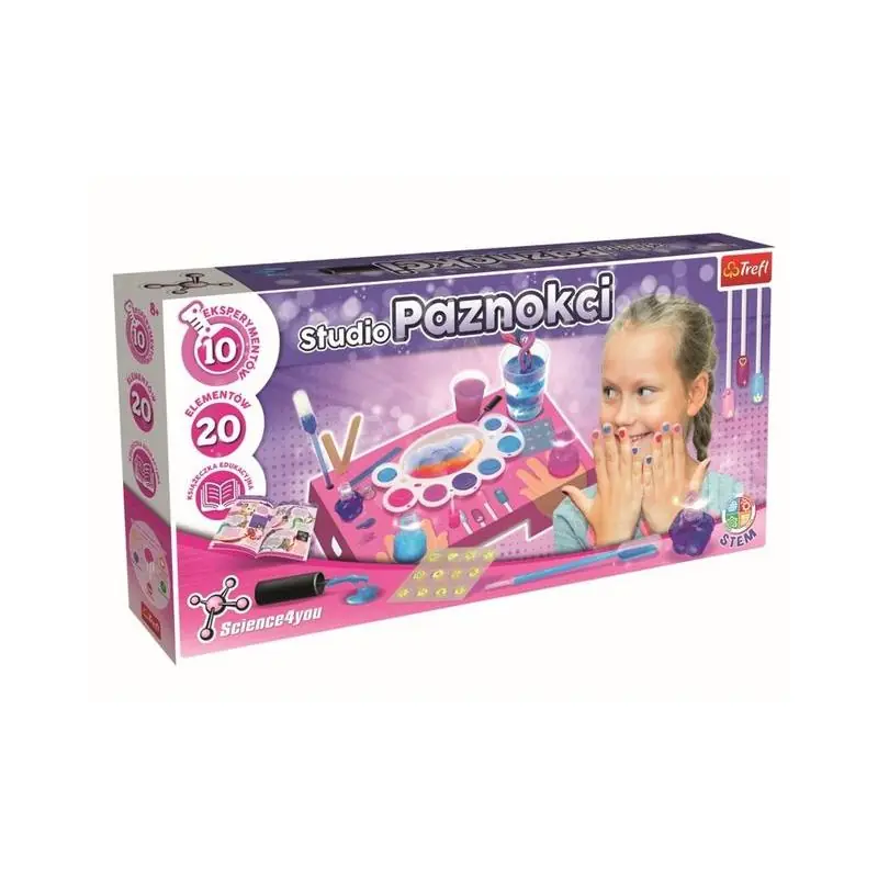 Studio Paznokci 8+ to kreatywny zestaw edukacyjny, który pozwoli dziecku stworzyć własne domowe spa i odkryć tajniki pielęgnacji oraz zdobienia paznokci. Dzięki bogatym akcesoriom i książeczce edukacyjnej mali miłośnicy eksperymentów poznają sekrety tworzenia lakierów, peelingów i niepowtarzalnych wzorków na paznokciach.