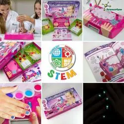 Zestaw pozwala na stworzenie aż 10 różnych eksperymentów, w tym lakierów, wzorków i peelingu.