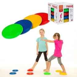 Dyski sensoryczne przeznaczone do ćwiczeń równowagi, korekcji wad postawy oraz masażu stóp. Bardzo dobrze sprawdzają się podczas zabawy z dziećmi, są uatrakcyjnieniem zajęć grupowych. Specjalne wypustki pobudzają receptory czuciowe i poprawiają ukrwienie. Dyski mogą posłużyć również jako poduszki sensoryczne do siedzenia dla przedszkolaków.