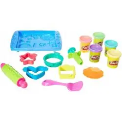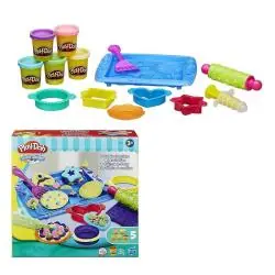 Ulep śmieszne ciastolinowe ciasteczka z PLD! Dzięki specjalnej formie możesz wypiekać ulubione słodkości wałkując je specjalnym wałkiem oraz wycinając kształty czterema foremkami. Ciasteczkowy potwór? Rozbawione buźki? Trójwarstwowe ciastko z tęczową posypką? Dekoruj wyjątkową wyciskarką i odciskaj różne formy, by stworzyć kolorowy, śmieszny świat pełen słodkości! W zestawie specjalne nożyki do przycinania ciastek, wałek do ciasta, dwie wyciskarki, szpatułka, arkusz do łakoci, talerz oraz pięć klasycznych tub PLD.