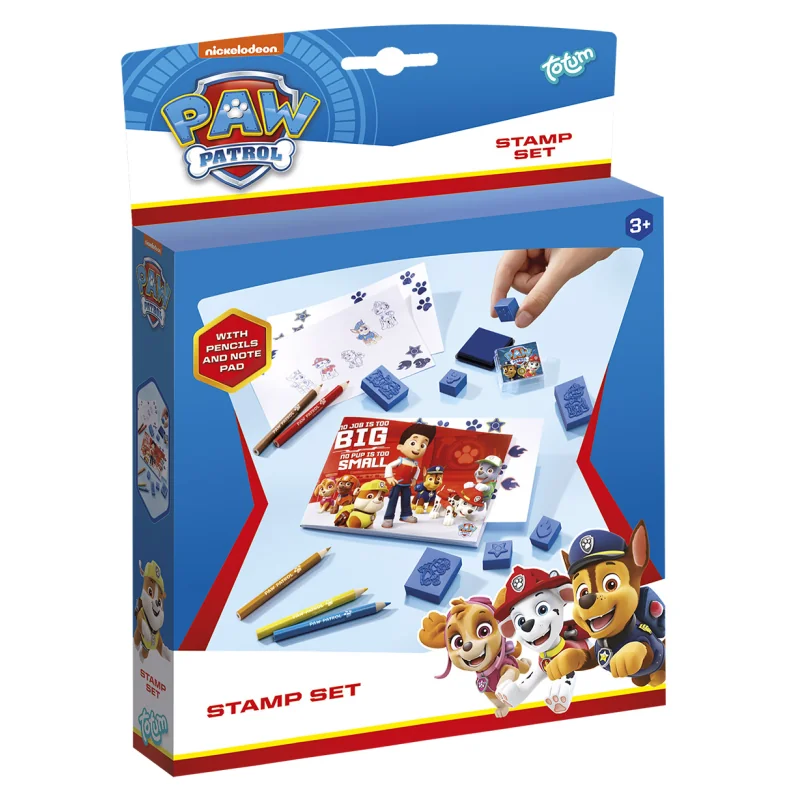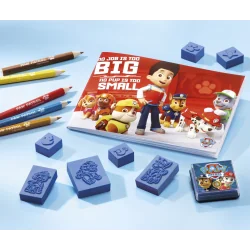 Zestaw z 7 pieczątkami, podkładką do stempli, 5 kolorowymi kredkami i blokiem rysunkowym z postaciami Psi Patrol: Chase, Marshall. Wykonaj swoje najlepsze projekty stempli i pokoloruj je, wykorzystaj je do rysunków lub do wykonania zaproszeń. Ożyw swoich bohaterów z serii Psi Patrol, aby zapewnić niekończącą się zabawę!