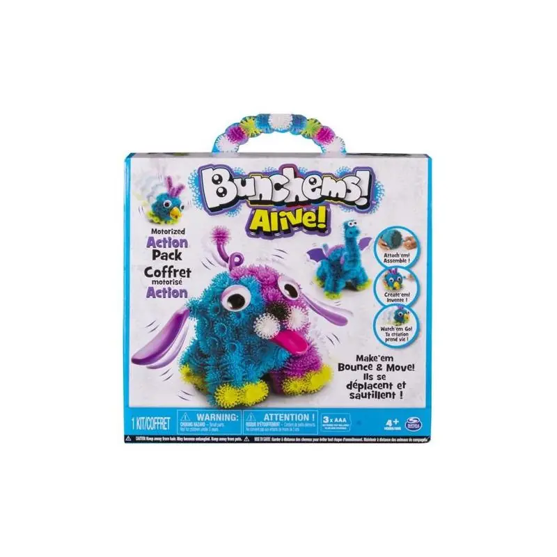 Ściskaj je, łącz i twórz z rzepami Bunchems! Te małe kolorowe kulki wczepiając się w siebie, tworzą dla Ciebie. Zrób tak by Bunchems skakały, podrygiwały i się ruszały! Kolorowe rzepy Bunchems – zbuduj wszystko czego zapragniesz! Możesz stworzyć swoje ulubione zwierzątka, albo wymyślić coś własnego! Z Bunchems jedynym ograniczeniem jest Twoja wyobraźnia!