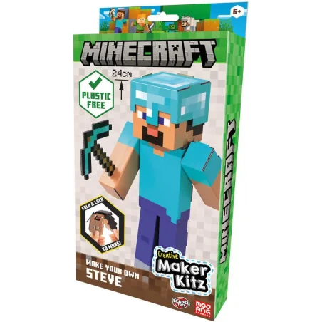 Ten zestaw pozwoli w łatwy sposób zrobić figurkę Steve`a - postaci z gry Minecraft. Wystarczy poskładać tekturowe części, nie trzeba do tego kleju czy nożyczek! Po złożeniu otrzymamy figurkę mierząca aż 25cm, która dodatkowo może poruszać ramionami w górę i w dół. Kartonowa postać świetnie sprawdzi się w zabawie, ale może też stać