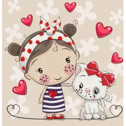 HAFT DIAMENTOWY DZIEWCZYNKA Z KOTEM 28 X 28 CM 6+