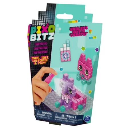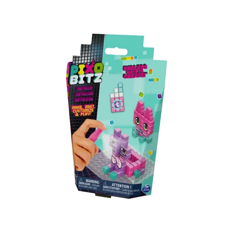 Pixobitz Metallic to zestaw uzupełniający do zestawu Pixobitz Studio. Zawiera dodatkowe elementy, tym razem metaliczne. Możesz nimi wzbogacić swoje projekty wykonane z Pixobitz Studio. Zawiera: 156 metalicznych, sześciennych elementów w 4 kolorach, 2 akcesoria, 1 taca, 2 karty z przykładowymi projektami, buteleczkę-spray.