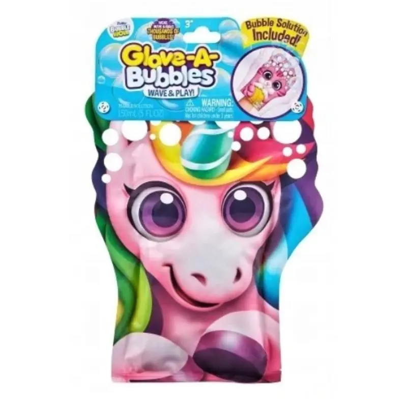 Tworzenie milionów bąbelków nigdy nie było łatwiejsze dzięki uroczej i super zabawnej rękawiczce Glove A Bubbles! Każde opakowanie rękawic A Bubbles zawiera zamykaną torebkę wypełnioną roztworem bąbelków. Po prostu zanurz w roztworze bąbelkowym, pomachaj i graj! Dostępne w różnych postaciach.