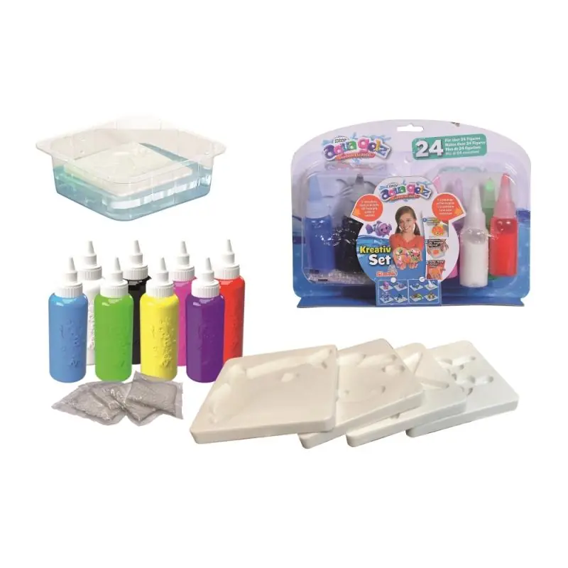 Aqua Gelz to zabawa kreatywna dla ciekawych, chcących rozwijać dziecięce pasje. Polega ona na tworzeniu miękkich stworków 3D przy pomocy mieszanki magicznego roztworu i kolorowego żelu.