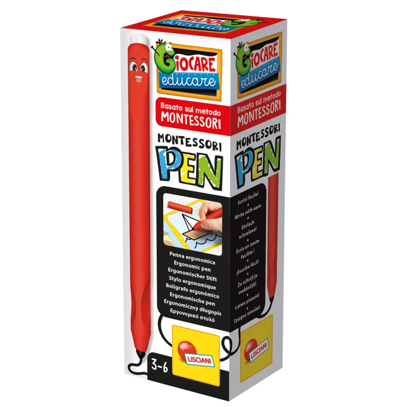 Montessori Pen powstał na podstawie badań nad anatomią. Ma ergonomiczny uchwyt ze specjalnymi wgłębieniami na palce, które wpływają na poprawne trzymanie długopisu. Wyjątkowy długopis świetnie sprawdzi się także dla dzieci piszących lewą ręką.
