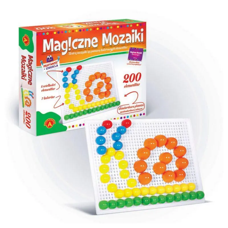 Magiczne Mozaiki to nie tylko świetna zabawa, ale przede wszystkim narzędzie, które pobudza wyobraźnię, wspiera rozwój motoryki małej oraz uczy cierpliwości i skupienia. To doskonały wybór dla rodziców i nauczycieli poszukujących wartościowych, kreatywnych zabawek edukacyjnych.