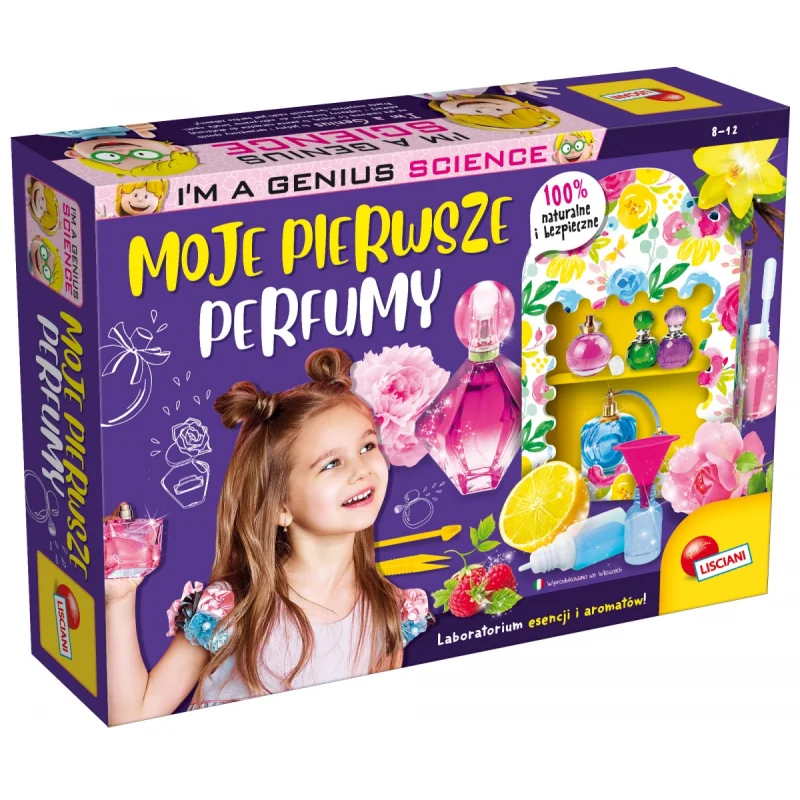 I’m a Genius – Moje Pierwsze Perfumy Lisciani 8+ to wyjątkowy zestaw edukacyjny, który wprowadza dzieci w fascynujący świat chemii zapachów. Dzięki bezpiecznym składnikom i klarownym instrukcjom, mali odkrywcy mogą samodzielnie komponować własne