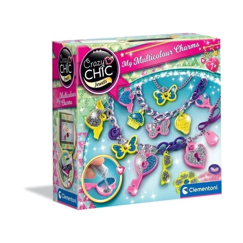 Crazy Chic Kolorowe Zawieszki od Clementoni to kreatywny zestaw do tworzenia własnej, unikalnej biżuterii dla dzieci, które uwielbiają modę, kolory i rękodzieło. Dzięki temu zestawowi dziewczynki mogą stworzyć kolorowe breloki, zawieszki i ozdoby według własnego pomysłu – rozwijając przy tym