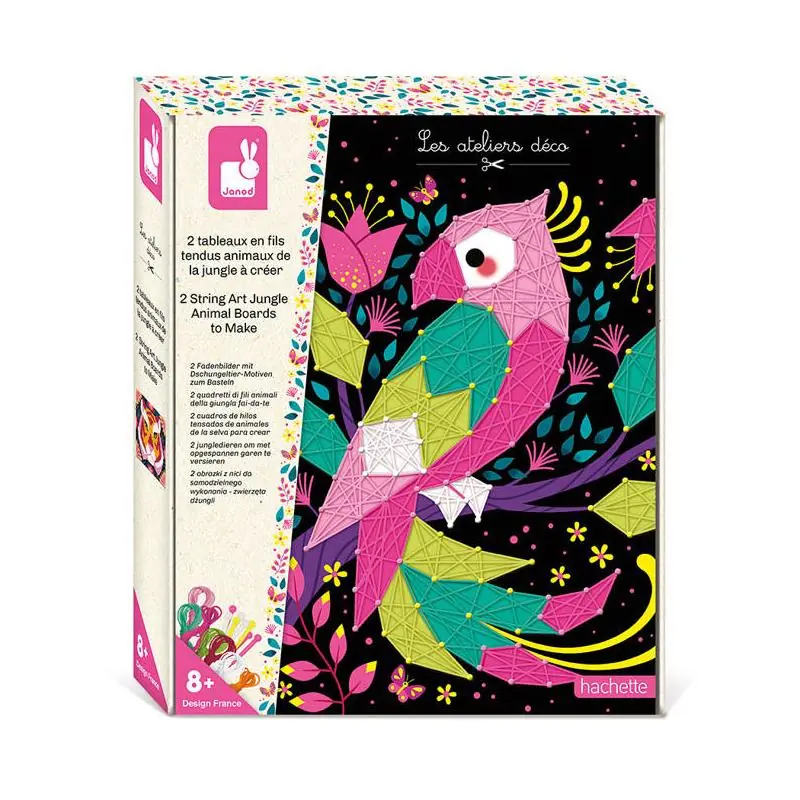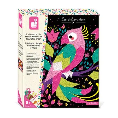 Zestaw kreatywny Przeplatanka 3D String Art – Zwierzęta dżungli marki Janod to wyjątkowa zabawa manualna dla dzieci od 8. roku życia, łącząca sztukę z nauką koncentracji. Za pomocą kolorowych nici dzieci tworzą efektowne, przestrzenne obrazy egzotycznych zwierząt: tygrysa,