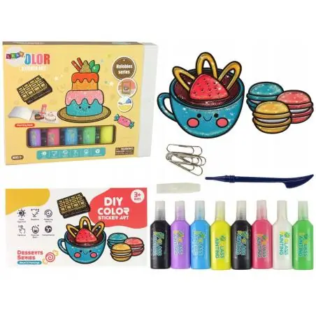 Zestaw kreatywnych naklejek "Słodkości" od Lean Toys to idealna propozycja dla dzieci, które uwielbiają dekorować swoją przestrzeń. Naklejki nadają się do ozdabiania okien, mebli i innych gładkich powierzchni. Brokatowe wykończenie i aż 8 intensywnych kolorów sprawiają,