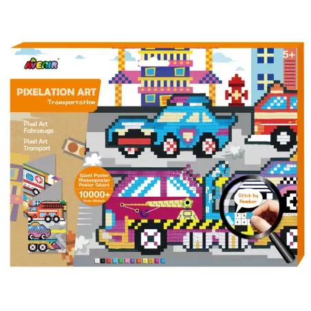 Mozaika kolorowe piksele Transport Russell to wartościowy zestaw edukacyjny, który łączy zabawę z rozwojem zdolności manualnych i kreatywnych. Motyw pojazdów oraz intensywne kolory sprawiają, że układanie mozaik staje się atrakcyjną i angażującą aktywnością.